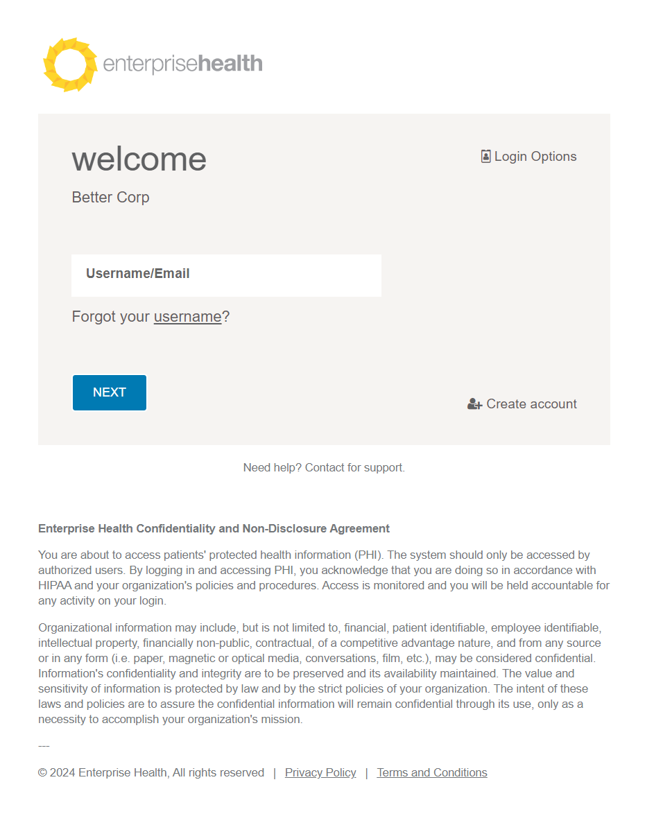 As of Release 202403, the username must be an email address. Typically, this email entered should be the email address in which the portal activation code was sent. However, users may enter another email address. In this case, the email address entered as the username will update the email address on the patient chart for the clinic and the email address to which the invite was sent will be removed.